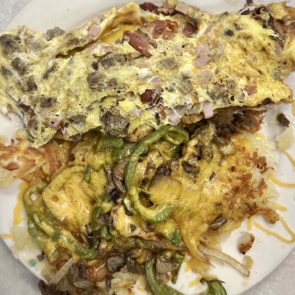 I've had food from everywhere, I've eaten thousands of eggs... This Meat Omelette was so Good... I can't compare it to any other Omelette, it's amazing. We also got Beef, Chicken, Ham & Cheese, Buffalo Chicken Empanadas, they were awesome. Great Crust. Good Country Fried Steak, Good French toast, Good hash browns, Good biscuits and gravy, Good corned beef hash, Good Chicken and waffles.