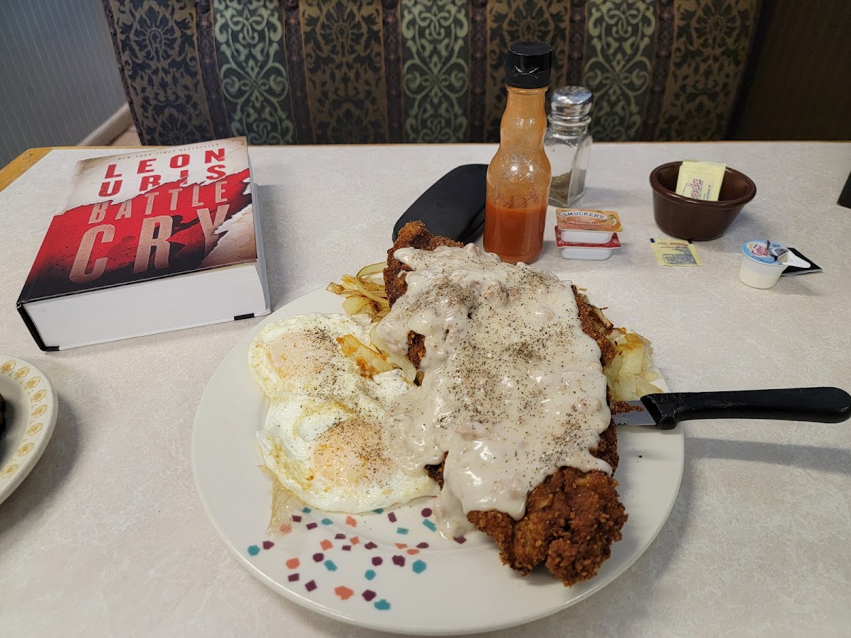 Our family of four absolutely loved Chelo’s kitchen! This is another one of those moments where I almost didn’t want to write a review because the food and service were amazing! I’m leaving atmosphere blank on this review because it is your typical diner that is kind of in need of some TLC in terms of seating. But I DO NOT want that to detract from my overall rating because once again the food and service were great! I love how Chelos does not complicate foods that don’t need to be complicated. Here is what we had: Cinnamon roll pancake (this was a special) - my stepson really enjoyed it! French toast, with two eggs over easy, bacon and white toast = PERFECTION! The meat omelette- this thing was loaded with meat - off the top of my head it had bacon, sausage, gyro meat, corned beef and then it also had American cheese My husband got the country fried steak breakfast and it was one of the best I’ve ever had! It was flavorful and tender. Ham and cheese empanada - I love the empanada shell and the ham but the cheese was a little strange. We can’t wait to return and try more menu items!