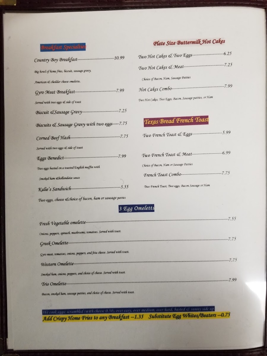 Lunch and dinner items offer a mixture of home-style comfort and diner staples, from loaded grits and Italian Wedding Soup to creatively topped salads and house-made burgers. These options support a variety of tastes and occasions, whether it’s a quick family meal or a casual gathering with friends.
